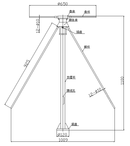 盘锥天线是一种垂直极化的全向宽频带天线,该天线具有工作频带宽、驻波比小、免天调、承受功率大、辐射效率高等技术特点。